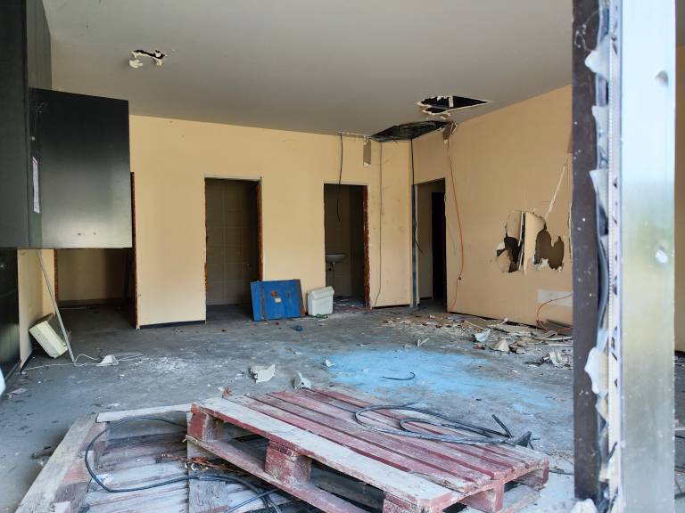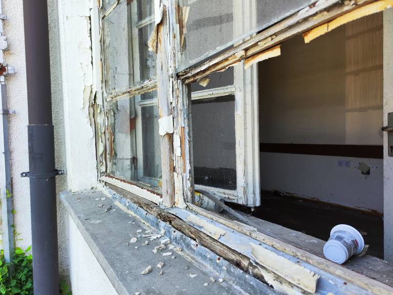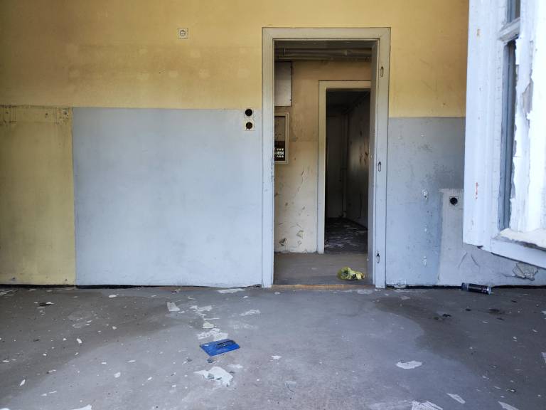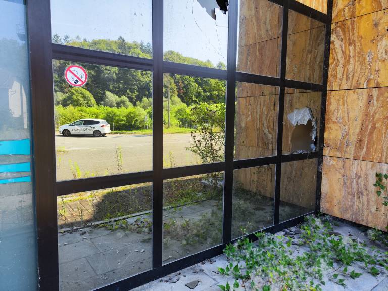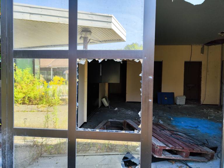 Fotografije razkrivajo groteskno stanje – razbita okna, uničene fasade, trava ki prerašča stene in poti, kupi smeti in celo zažgani avtomobili. Na nekdaj uspešne posle spominjajo le še zbledele table in napisi.