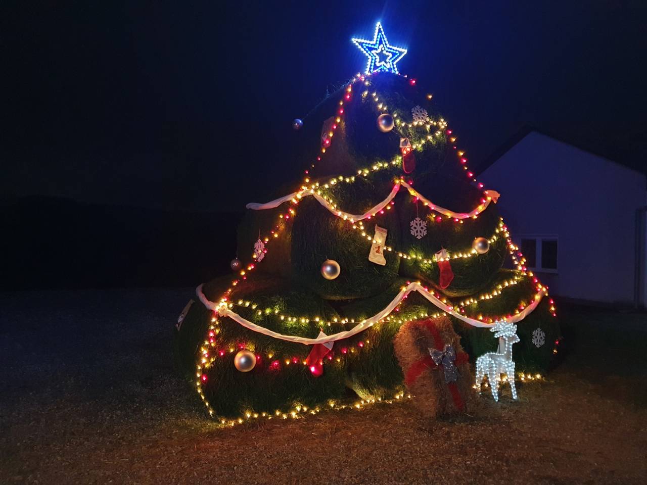 V majhni obmejni vasici Pordašinci so člani Kulturno-turističnega društva Zvon ustvarili božično smreko iz slamnatih bal.