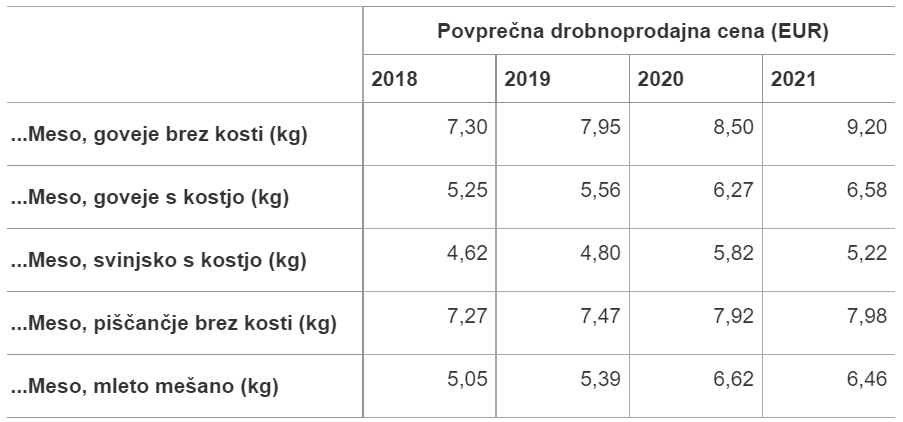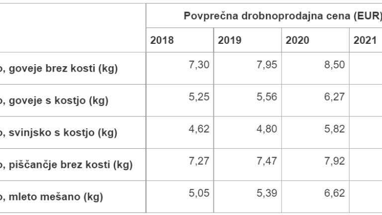 Podatki Statističnega urada Republike Slovenije razkrivajo povprečne drobnoprodajne cene mesa in mesnih izdelkov.