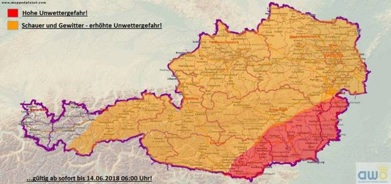 Opozorilo so izdali tudi avstrijski meteorologi, ki najhujše nevihte napovedujejo prav za jugovzhodno obmejno območje, torej na meji s Pomurjem in Štajersko.