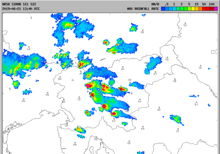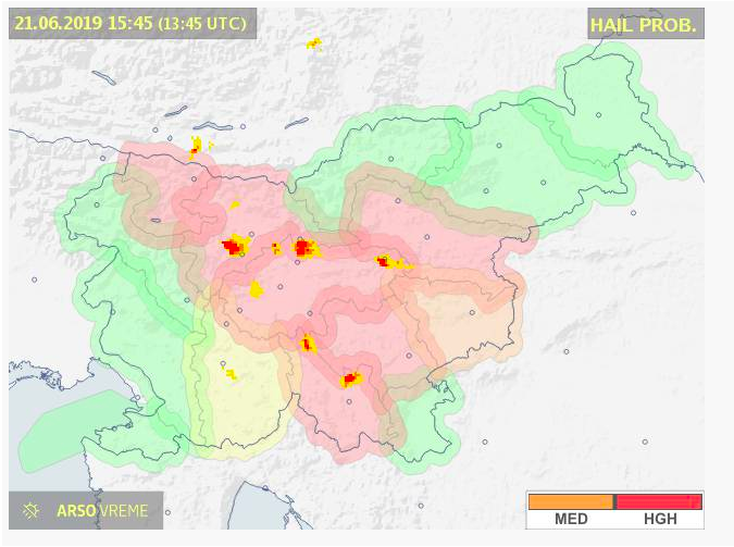 Po podatkih Agencije Republike Slovenije za okolje so od Gorenjske proti jugovzhodu nastale tri nevihtne celice z veliko verjetnostjo toče. Pričakujejo, da bo lahko nastala še kakšna. Celice se ne premikajo ali pa se premikajo zelo počasi proti vzhodu.