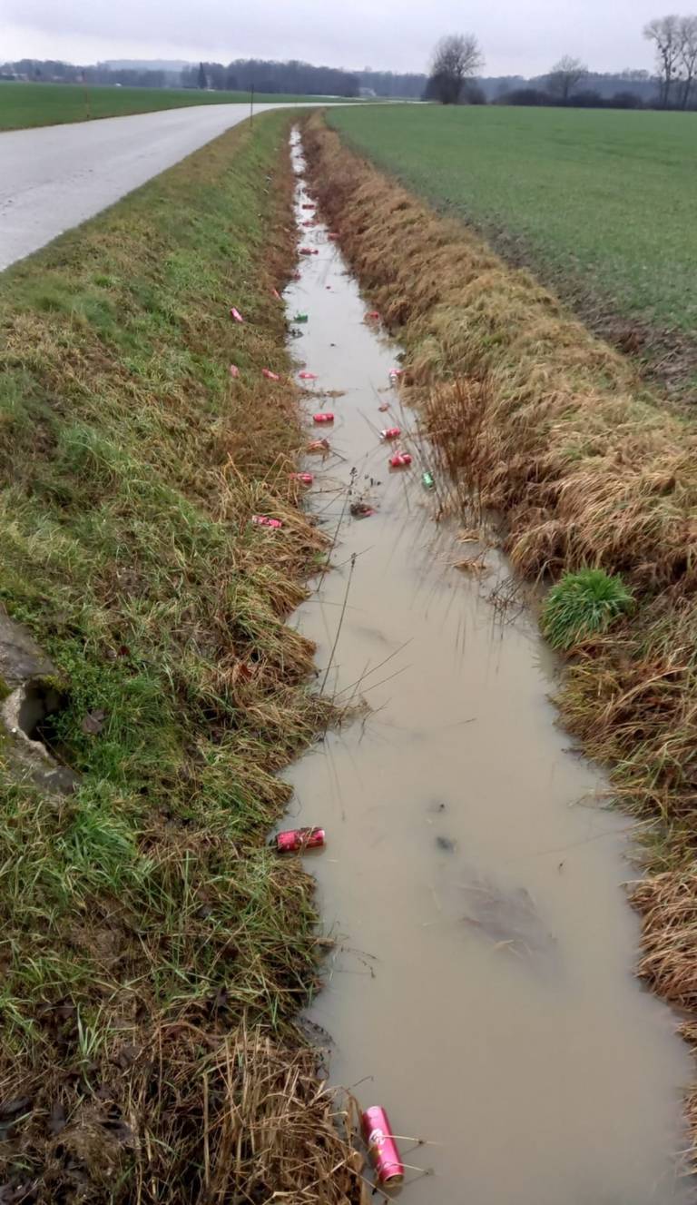 Ob glavni cesti Mota - Razkrižje do domačini opazili grozovit prizor, v jarku ob cesti je bilo odvrženo ogromno praznih pločevink.