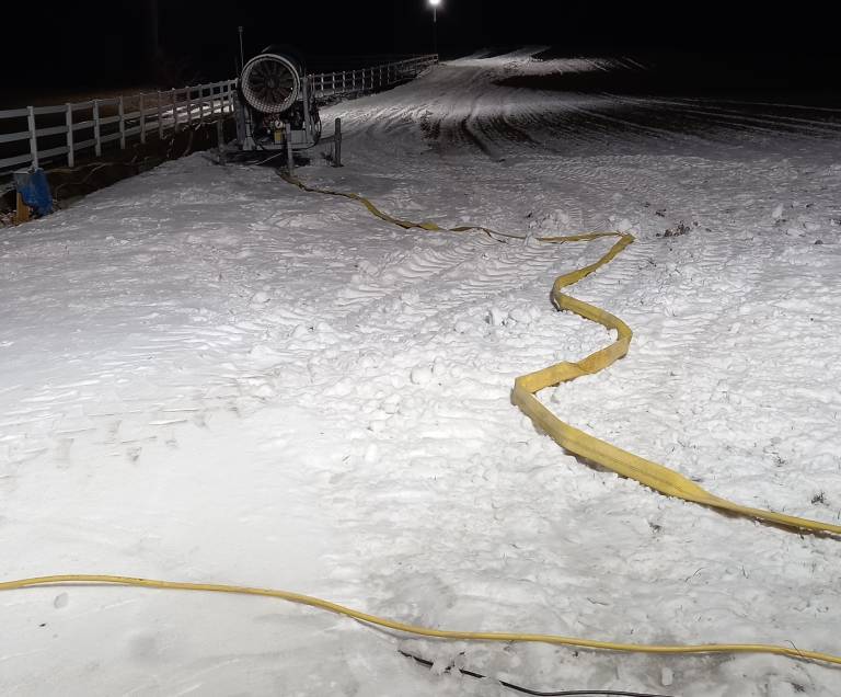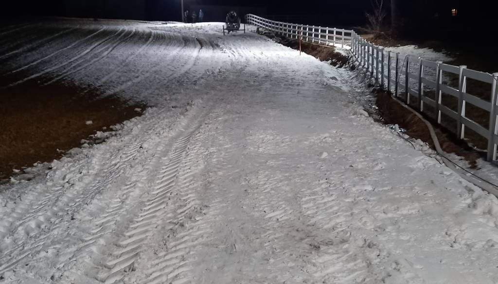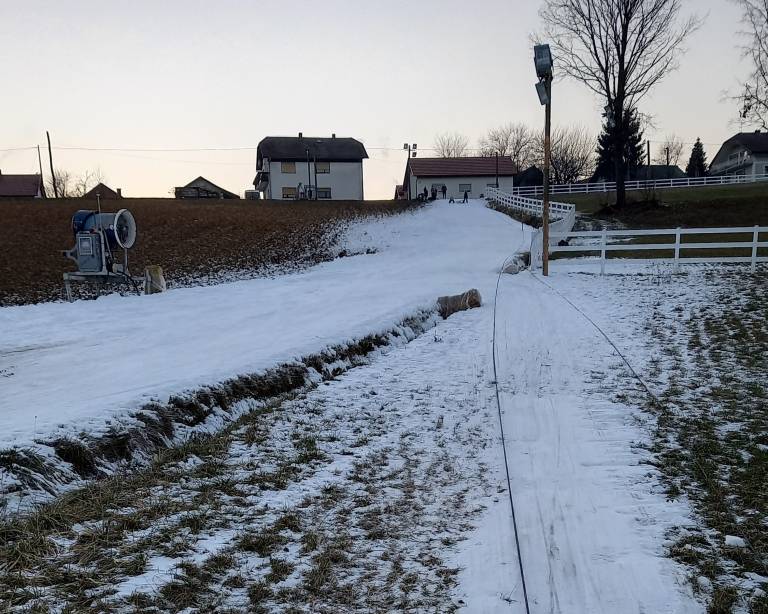 Da bi se lahko otroci tudi doma te dni predajali zimskim radostim, se je Uroš Ficko domislil, da jim kar sam naredi progo za sankanje. V Ropoči je spadno snejg!