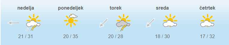 Najvišje dnevne temperature bodo od 28 do 32, na Primorskem ob šibki burji do 36 stopinj Celzija.