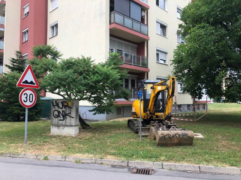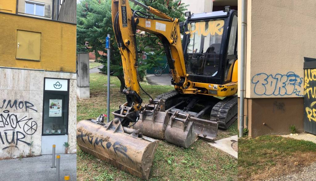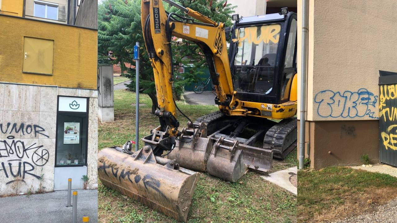 Vandali so popisali fasade večstanovanjskih stavb, smetarnice, podhode in ne boste verjeli, celo bager.
