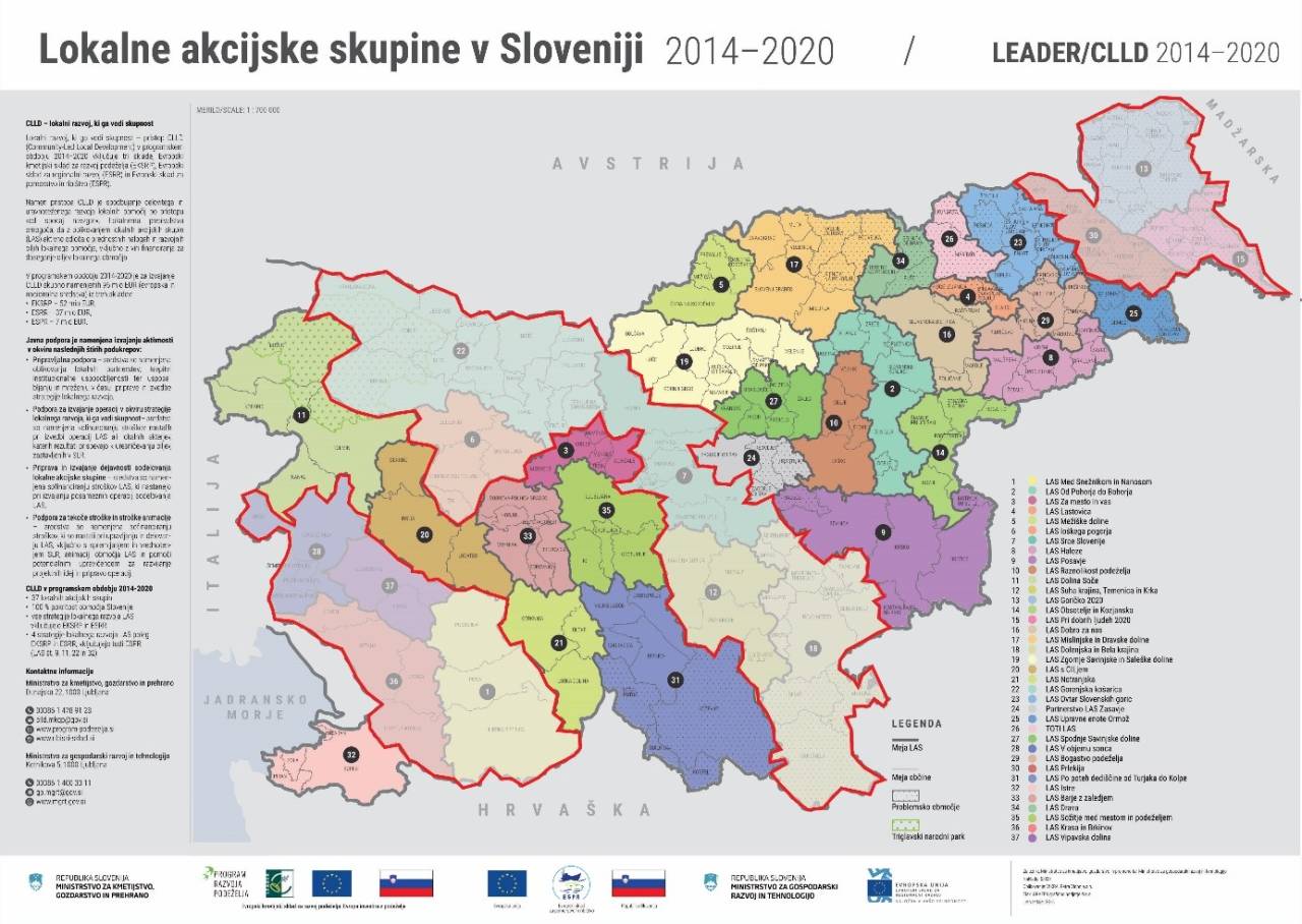 Zemljevid 12 sodelujočih partnerskih Lokalnih akcijskih skupin v projektu sodelovanja »KOLESARSKA VERIGA NA PODEŽELJU«