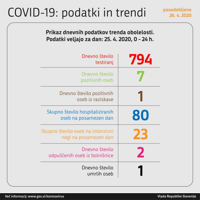 Po zadnjih podatkih, ki jih je sporočil državni vrh, je bilo včeraj v štirindvajsetih urah opravljenih 794 testiranj, od tega jih je bilo sedem pozitivnih na koronavirus.