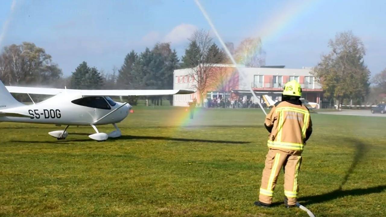 Dobrodošlico so ob pristanku na domači zemlji izrazili tudi gasilci in pripravili prav poseben sprejem.
