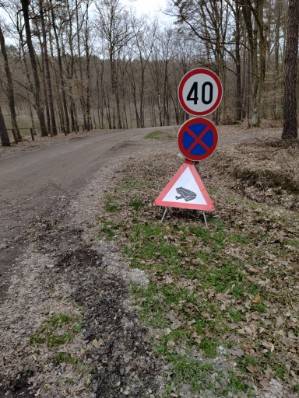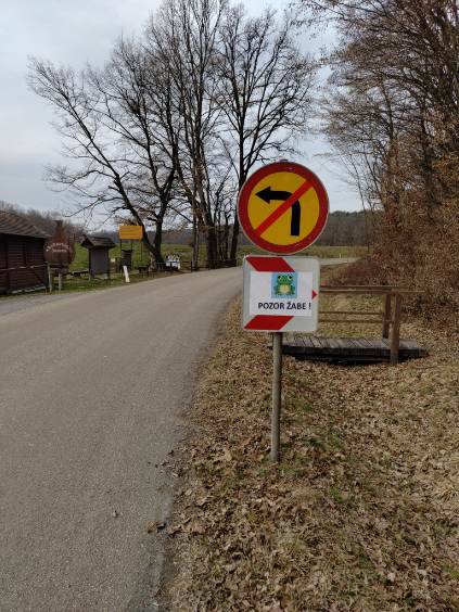 »V času njihove spomladanske migracije smo na najbolj izpostavljenih delih območja namestili opozorilne table, s katerimi obiskovalce opozarjamo na povečano prisotnost žab in drugih dvoživk ter jih pozivamo k dodatni previdnosti pri gibanju in vožnji.