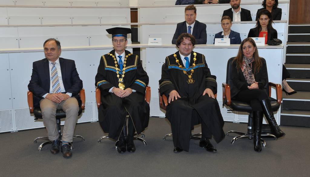 Na inavguralni slovesnosti je rektor Univerze v Mariboru dekanu Fakultete za naravoslovje in matematiko slavnostno predal akademske insignije.