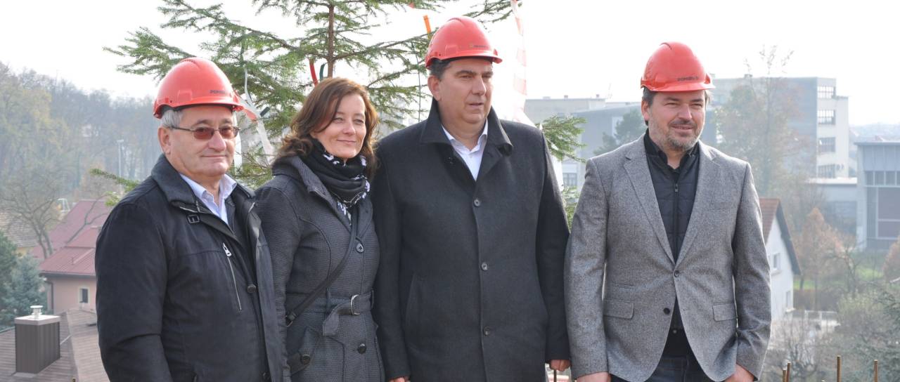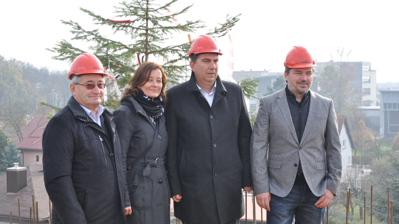 Ob betoniranju stropne plošče nad zadnjim nadstropjem je investitor, družba Imo-Real, danes pripravil tudi tradicionalni odomaš oziroma likof. Pomembno prelomnico v gradnji so tako obeležiti s postavitvijo smrečice na vrhu slemena, ki ji je sledila še pojedina.