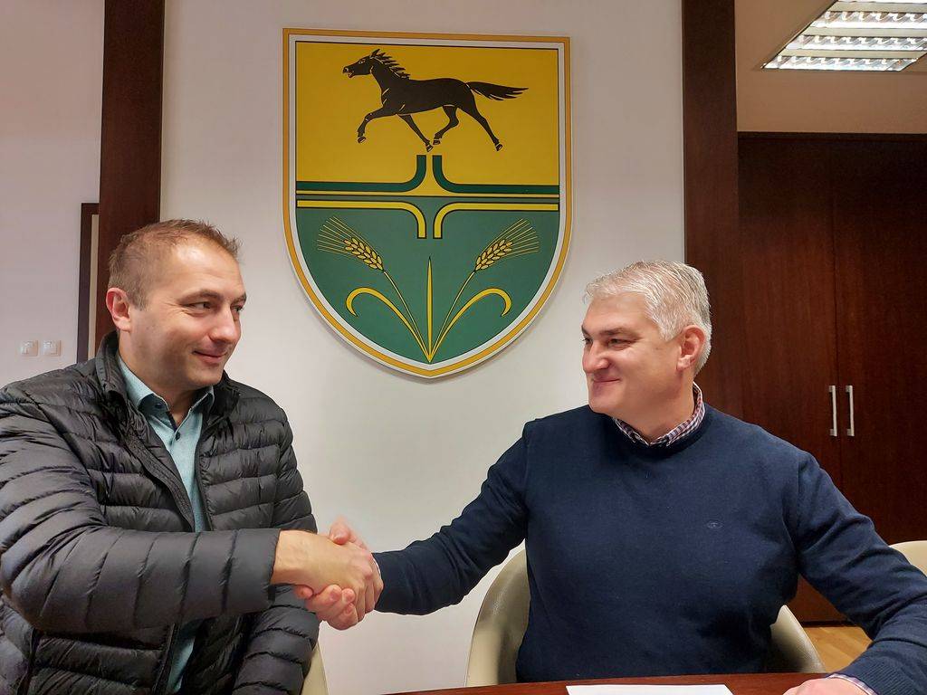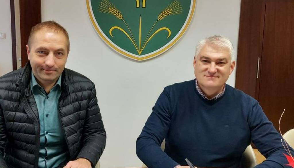 Župan občine Križevci Branko Slavinec in direktor pomurske enote Deželne banke Slovenije Mihael Janžekovič sta podpisala pogodbo o izvajanju plačil v občinski blagajni.