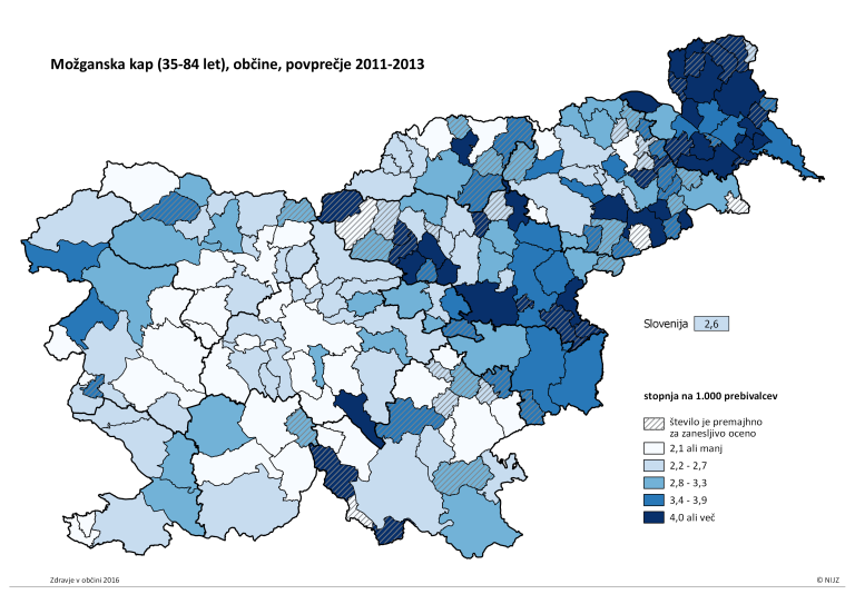 Možgansko kap je doživelo največ občanov iz Pomurja v občinah: Apače, Cankova, Črenšovci, Dobrovnik, Grad, Gornji Petrovci, Ljutomer, Križevci, Kuzma, Moravske Toplice, Odranci, Puconci, Rogašovci, Sveti Jurij, Šalovci in Turnišče.