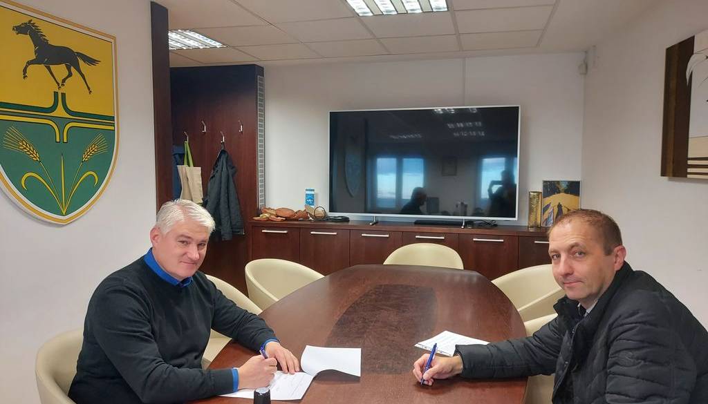 Župan občine Križevci Branko Slavinec in direktor pomurske enote Deželne banke Slovenije Mihael Janžekovič sta podpisala pogodbo o izvajanju plačil v občinski blagajni tudi za leto 2024.