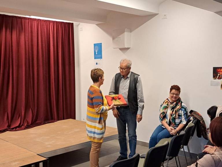 Damijana Belcl, vodja upravno-splošnega oddelka ljutomerske občinske uprave, je predavatelju izrekla dobrodošlico ter mu v zahvalo predala Monografijo Ljutomera.