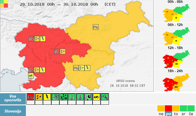 Izdana so opozorila: medtem ko je bolj na udaru zahod Slovenije, pa mora biti pozoren tudi vzhodni del.