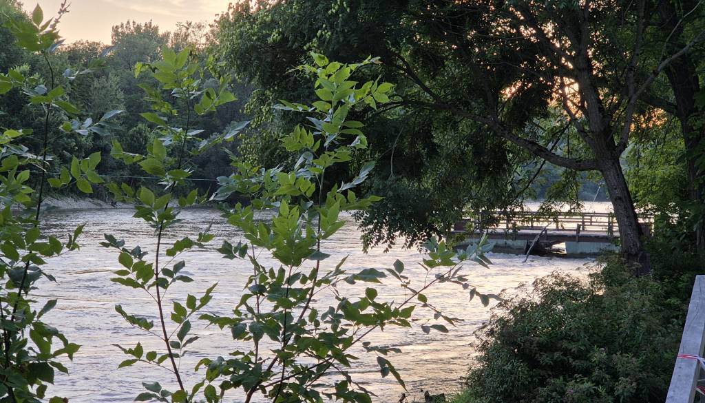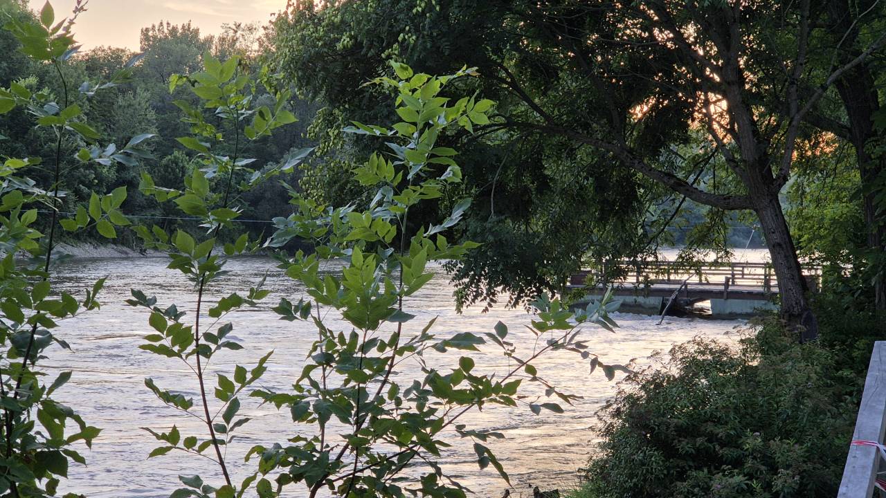 Do tega pojava prihaja zaradi odboja in loma svetlobe sončnega zahoda na površini reke.