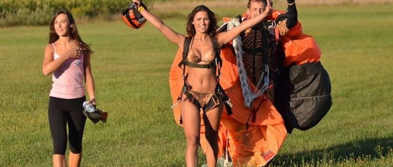 Fotografije ter video s tega spektakularnega skoka si lahko ogledate v prispevku Skočila s padalom v bikinkah