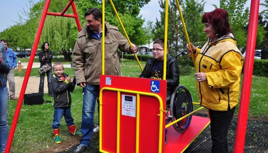 Otroško igrišče v soboškem parku je danes dobilo prvo certificirano gugalnico za gibalno ovirane otroke v Sloveniji.