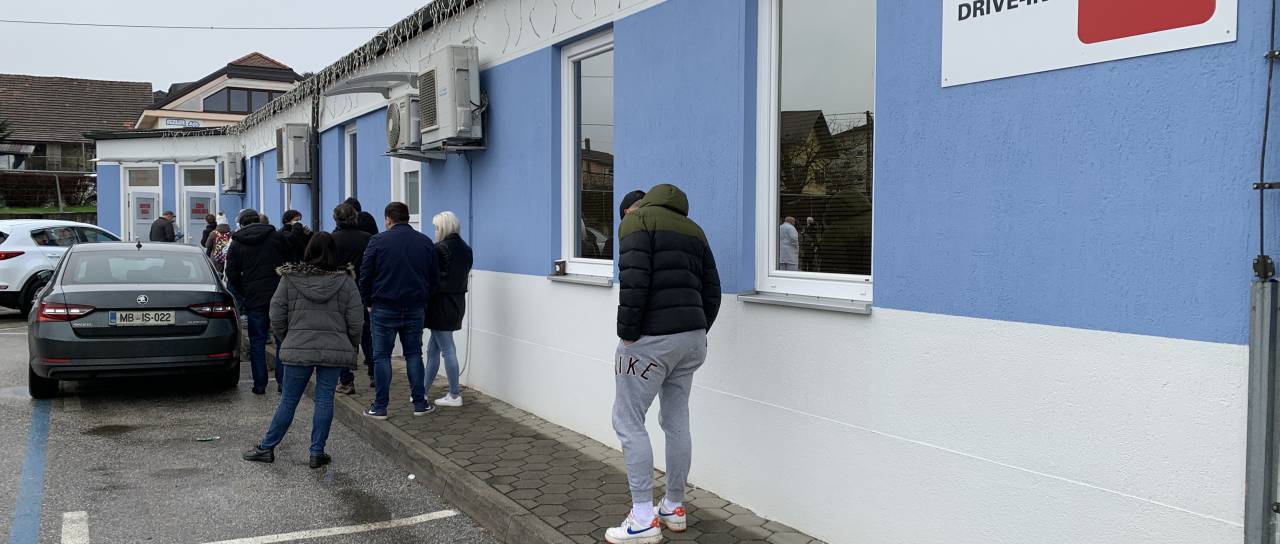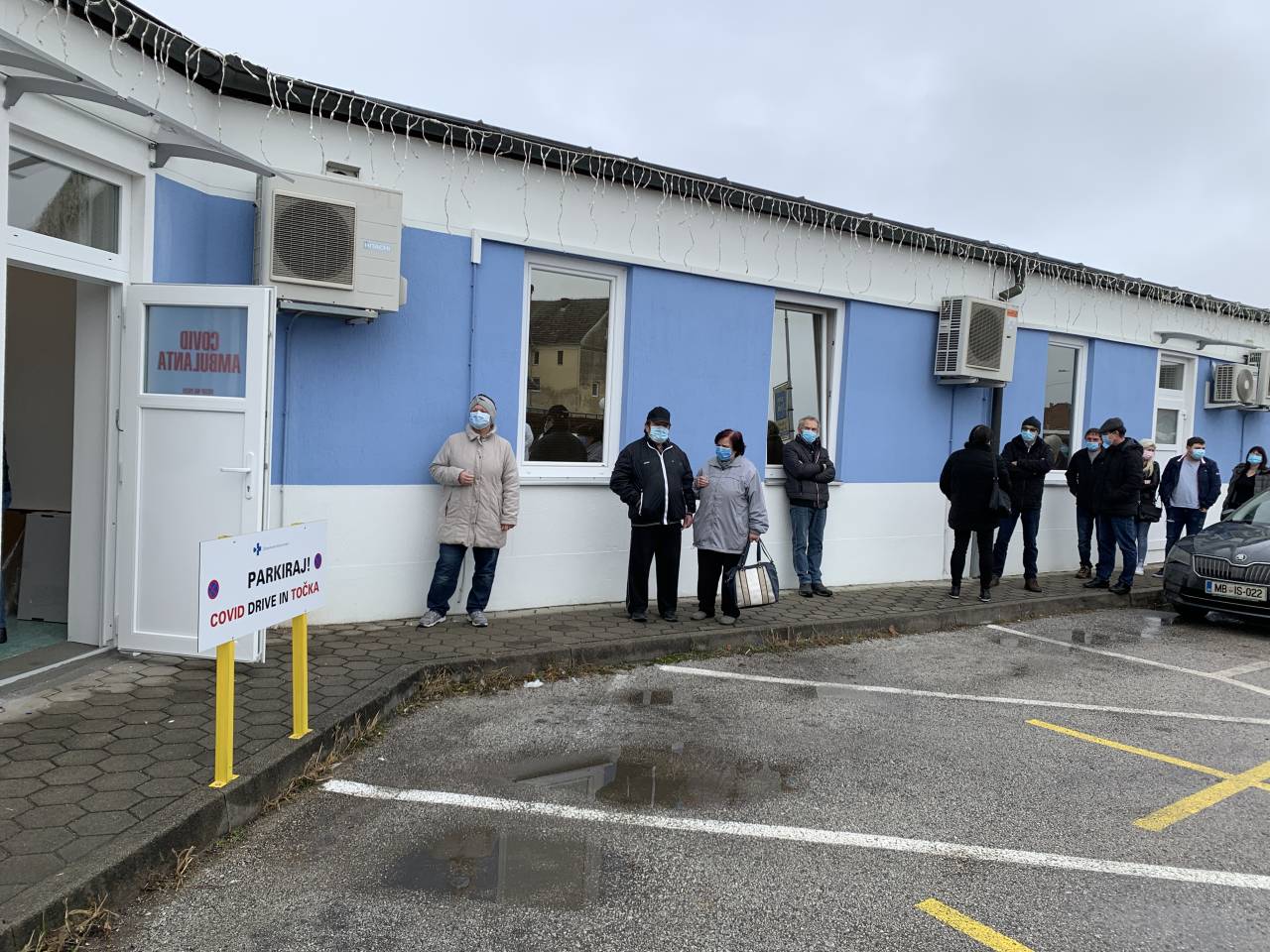 Pred Zdravstvenim domom Lenart se je že pred deseto uro zjutraj, ko se je uradno pričelo množično testiranje, pričela nabirati vrsta za hitre antigenske teste.