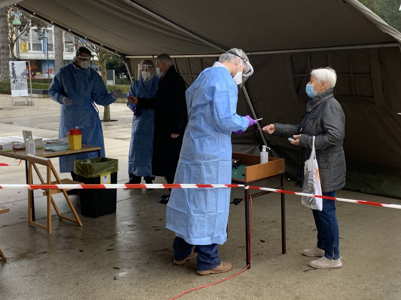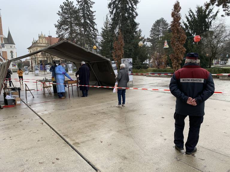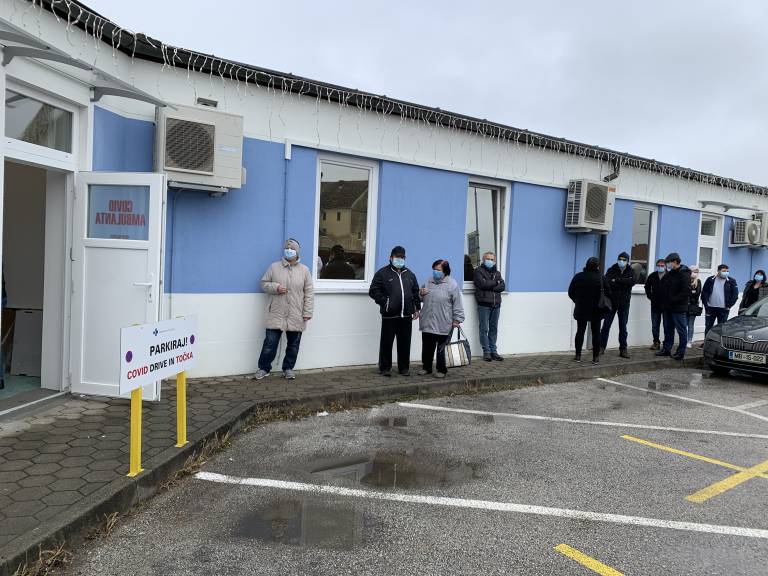 Lenart je bil na seznam mest za prostovoljno testiranje dodan šele minuli konec tedna, časa za priprave in obveščanje je bilo malo, a odziv je bil danes dopoldne velik. Z božičnimi vizirji zdravstvenih delavcev je bilo čutiti celo nekaj prazničnega vzdušja.
