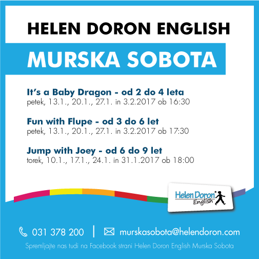 Več kot dva milijona otrok po svetu danes govori tekoče angleško, zahvaljujoč metodi Helen Doron English. Utrip učnih uric lahko sedaj starši in otroci preizkusite tudi na brezplačnih predstavitvenih uricah, ki se odvijajo prav v teh dneh v Učnem studio Helen Doron English v Murski Soboti, in sicer: