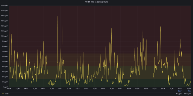 Tako je denimo merilna postaja 11. januarja 2023 zvečer namerila koncentracijo kar 140 mikrogramov na kubični meter.
