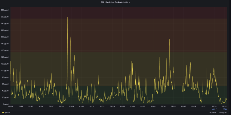 Od 26. decembra lani smo podatke iz merilne postaje agencije za okolje na Cankarjevi ulici sproti beležili v podatkovno bazo in jih zdaj po dveh mesecih analizirali.