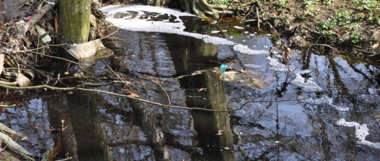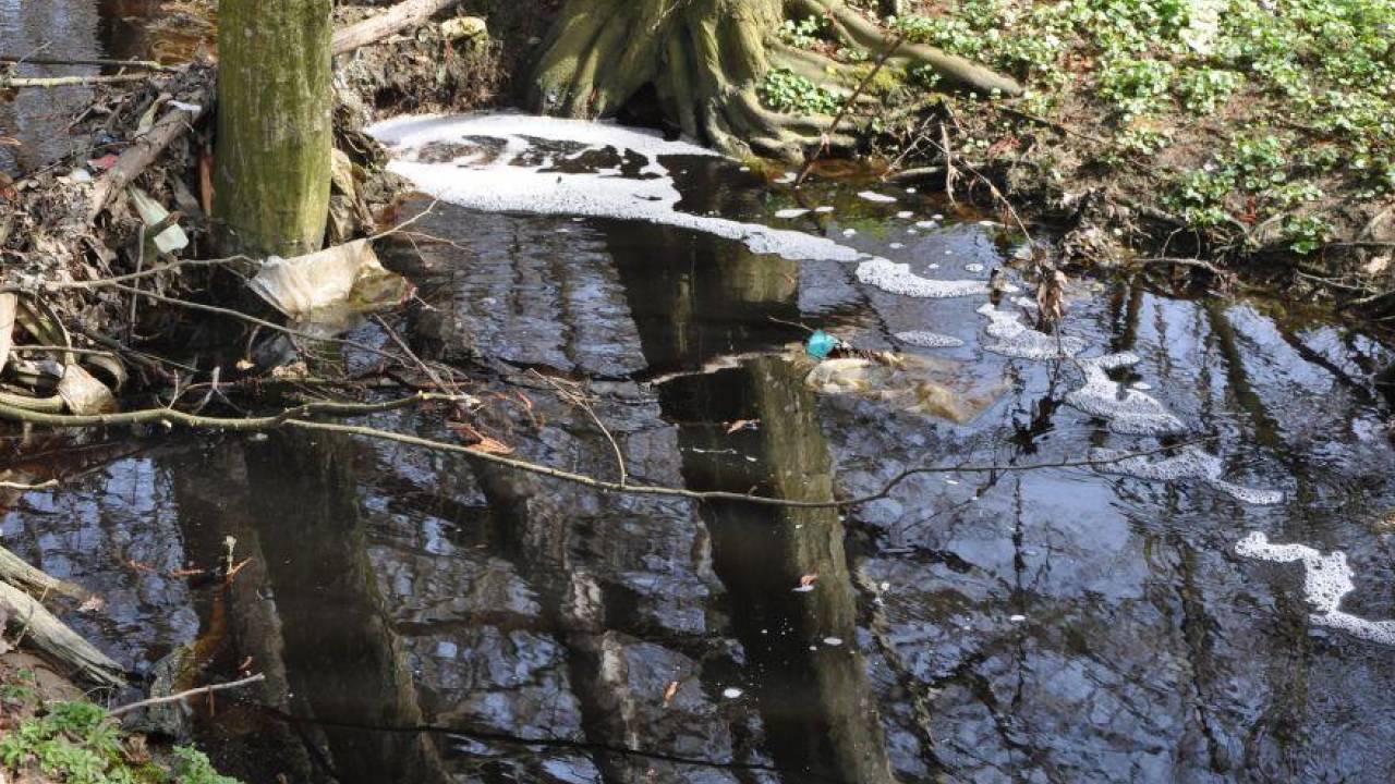 Gnojevki podobna snov, ki je iz cevi pritekala v gozdni potok, je v celoti onesnažila državni vodotok.