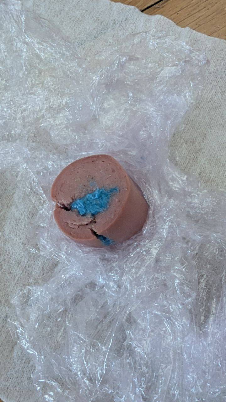 Strupena vaba je sestavljena iz klobase in po oceni veterinarja strupa za podgane.