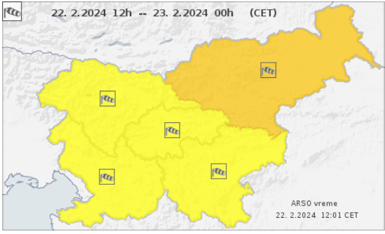 Zaradi močnega je agencija za okolje izdala oranžno opozorilo za severovzhod Slovenije.