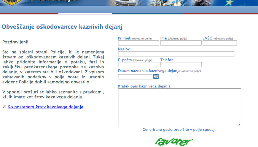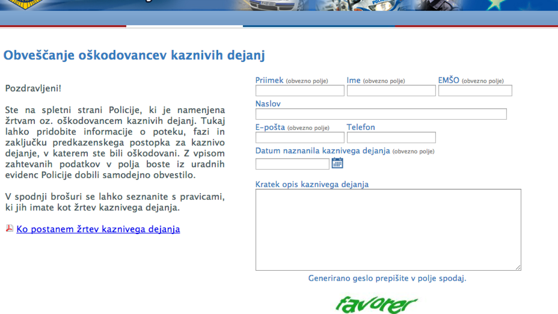 Od prvega aprila deluje nova spletna aplikacija policije, namenjena oškodovancem žrtvam in oškodovancem kaznivih dejanj. Ti bodo odslej lahko tudi prek spleta dostopali do informacij o poteku predkazenskega postopka za kaznivo dejanje, v katerem so bili oškodovani. Tako bodo do informacij prišli hitro in neposredno.