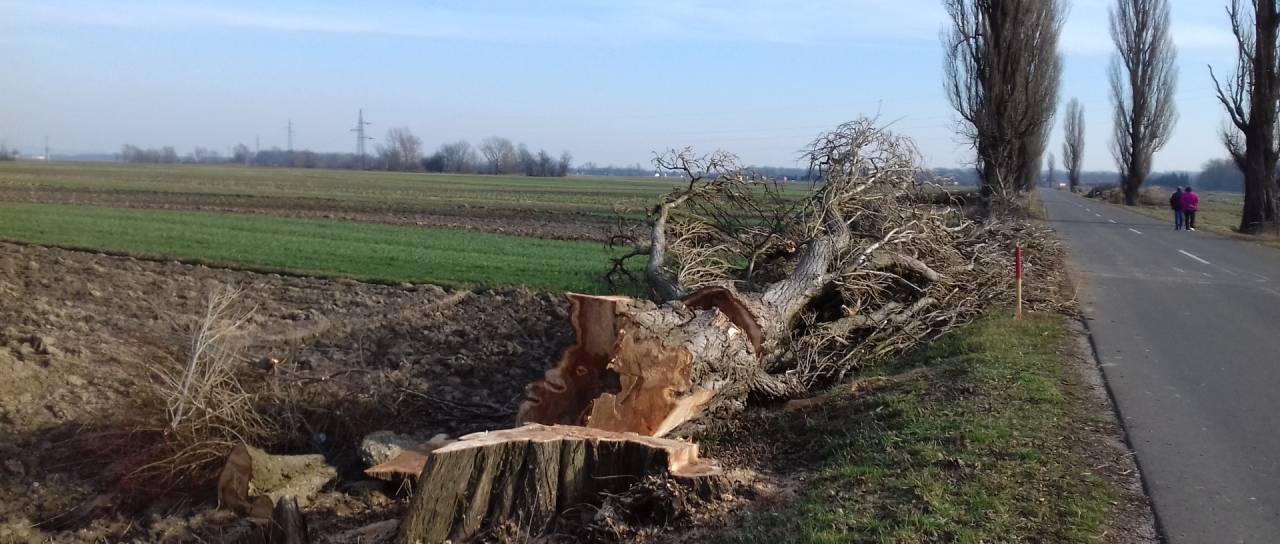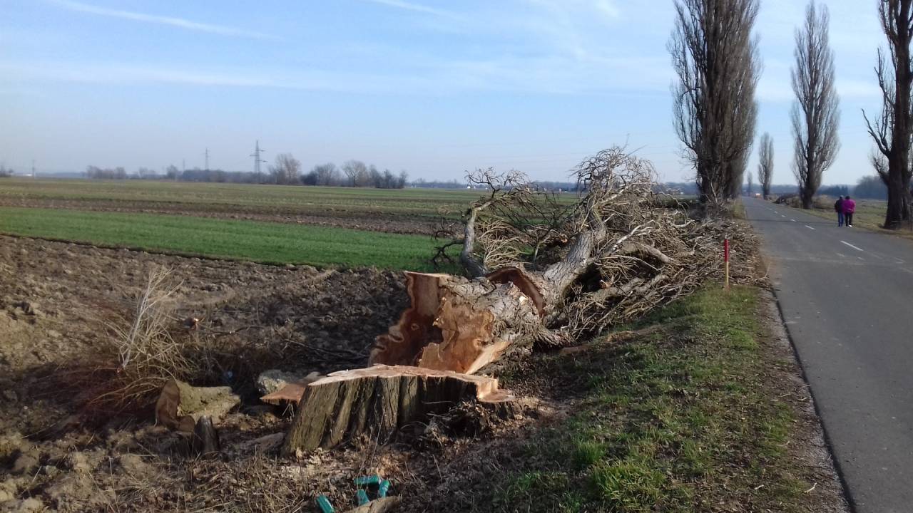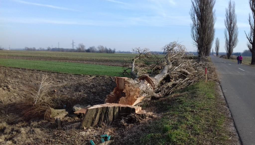 Večina dreves je že padlo in na njih so vidne posledice starosti, drevesa so namreč strohnela in tudi veje so bile nevarne za vse udeležence prometa.