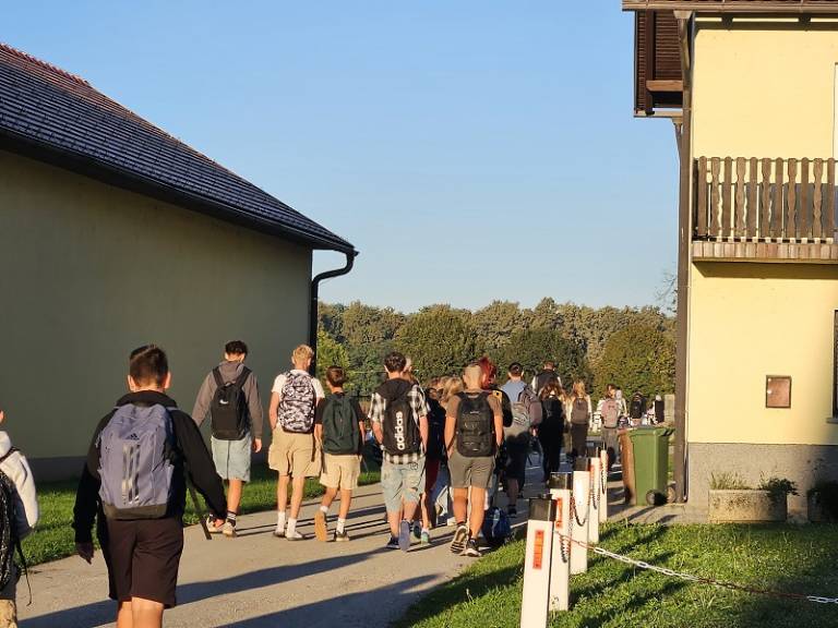 Župan je učencem in učenkam povedal, kako je bilo s pešačenjem nekoč, ter jih spodbudil k hoji in kolesarjenju. Nato so se vsi skupaj peš odpravili proti šoli.