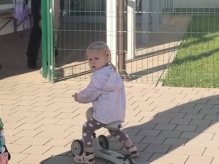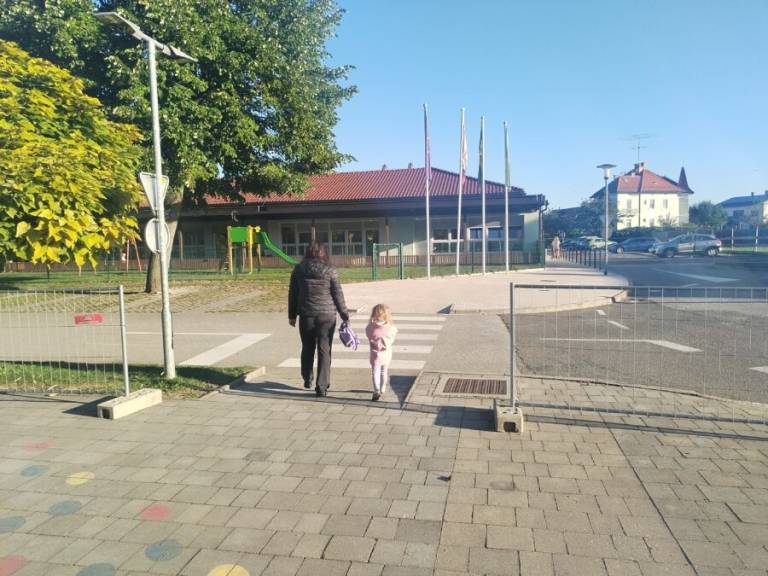 Veliko je bilo tudi vrtčevskih otrok, ki so do vrtca - v spremstvu staršev ali starih staršev - prišli peš, s kolesom, skirojem ali vozičkom.