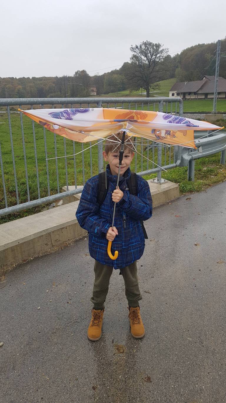Mimogrede. Prometna kača se odvija ne glede na vreme: »V ponedeljek nas je pošteno premočilo in vztrajamo še naprej. Šola je pred letom učencem kupila tudi rumene kapice, da smo na poti bolj vidni. Za motivacijo učencem in učiteljem smo izdelali majhne kartončke na katere učencem pred šolo ob jutrih prilepimo nalepko za vsako prehojeno pot.« Šolska kuhinja pa za na pot pripravi jutranji čaj in sadje, da je pot v šolo še toliko bolj slajša. Bravo!