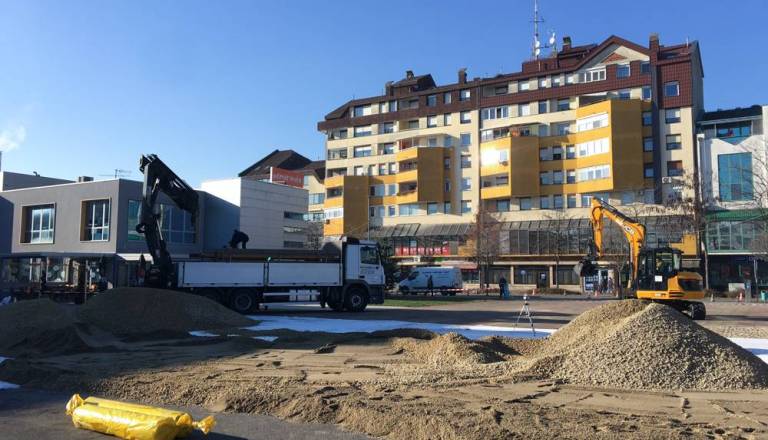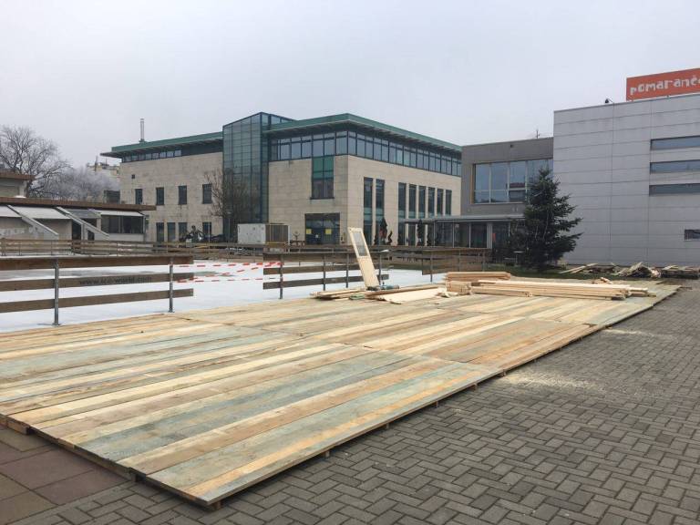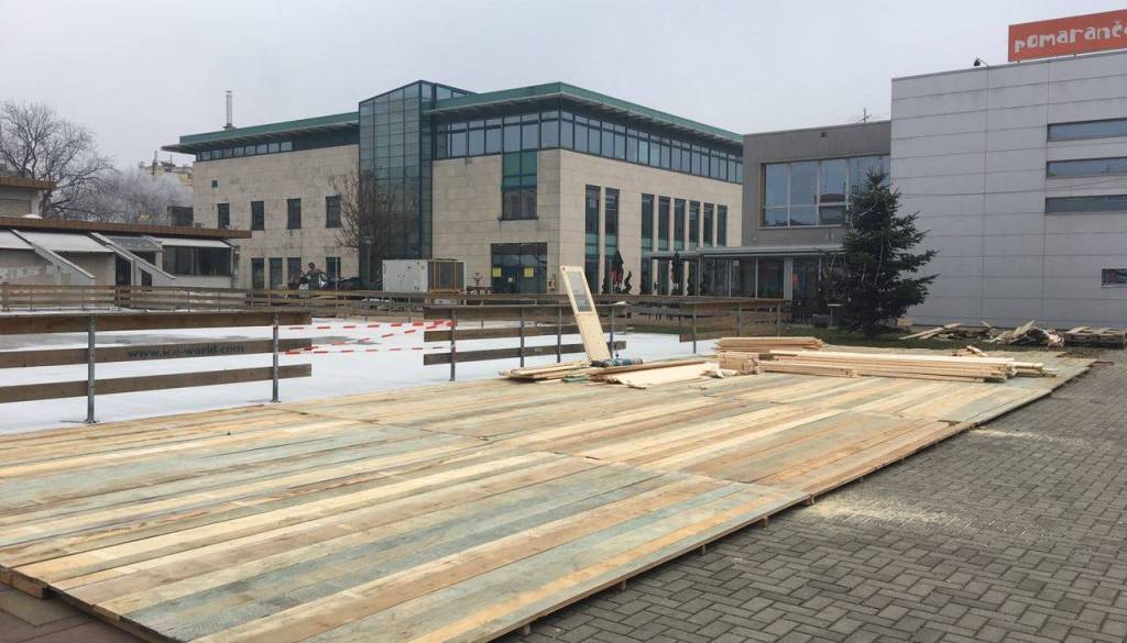 Minulo soboto so delavci začeli s postavitvijo drsališča, ki pa, kot je videti, ne bo isto kot je bilo minula leta, ko je bila okrog drsališča postavljena bela plastična ograja. Zdaj je ta postavljena iz lesenih desk.