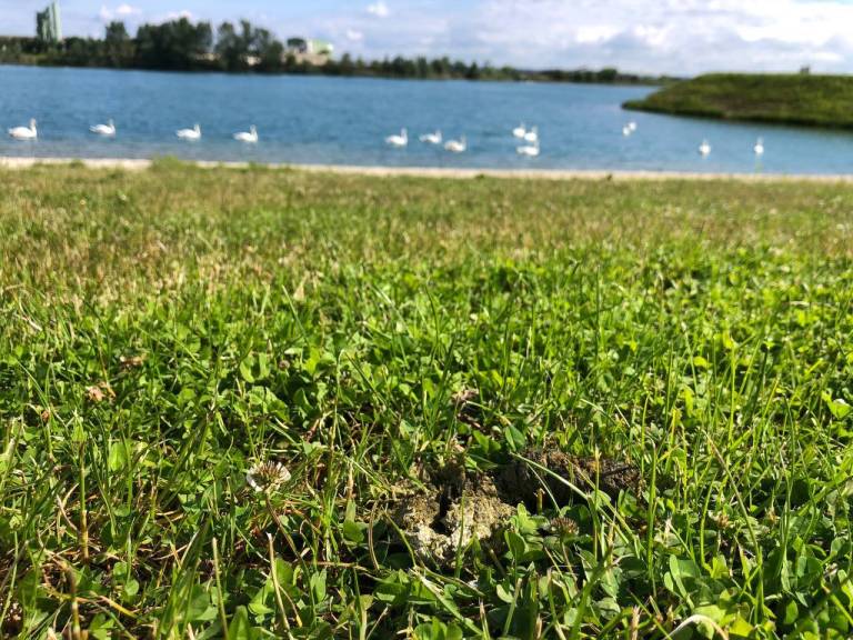 Iztrebki, ki so na zelenici vse od otroškega igrišča pa do lokala ob jezeru, so namreč od labodov, ki se večinoma zadržujejo na tem delu jezera.