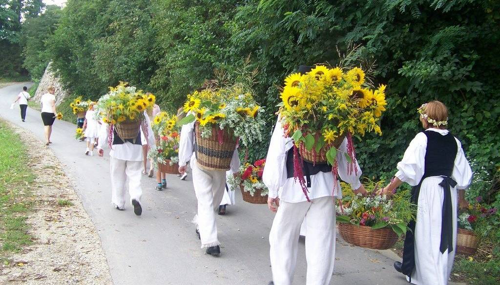 Prireditev se je začela s povorko cvetja na domačiji Srša na Veščici. Kot je povedala Cilka Srša, se vsako leto na njihovi domačiji na ta dan zbere veliko ljudi od najmlajših do najstarejših, ki nosijo v spletenih koših ali košaricah najrazličnejše cvetje. Na ta veliki cerkveni krščanski praznik se dan prej ali še isti dan na domačiji Srša zberejo ženske iz župnije Razkrižje, ko skupaj z možmi naberejo najrazličnejše cvetje. Tukaj so za vse, ki so se udeležili povorke, naredili aranžmaje iz cvetja. Nekaj rož so posejali na domovih, na njivi ali vrtovih, spet drugi pa naberejo na bližnjih travnikih.