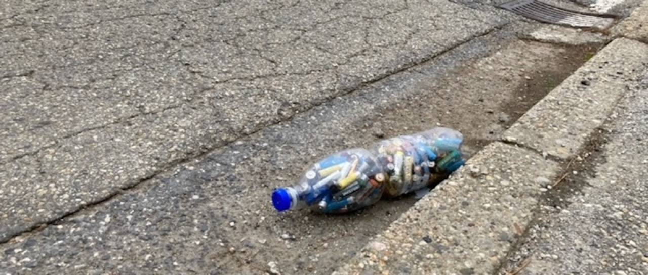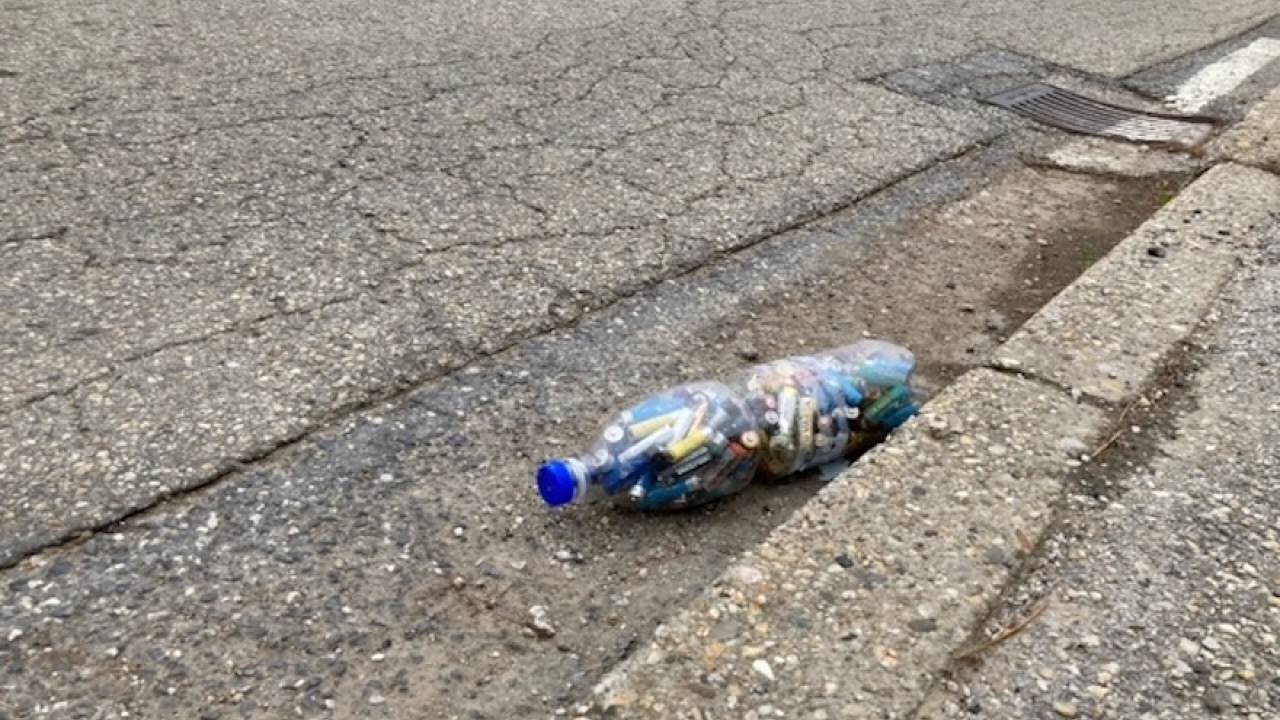 Tako odvrženo plastenko polno baterij smo opazili na robu ceste. Nekdo jo je odvrgel kar iz avtomobila sredi stanovanjskega naselja v občini Murska Sobota.