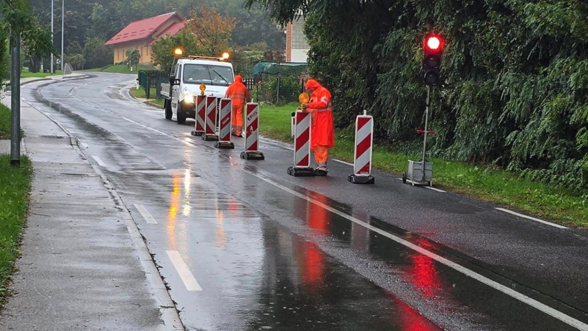 Polovična zapora ceste Radenci - Kapelski Vrh zaradi plazu, ogrožena dobava vode.