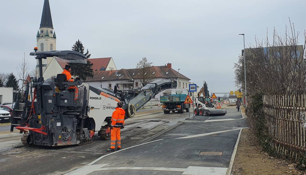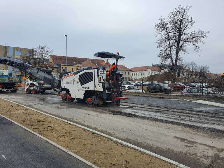 Na enem delu ulice trenutno poteka celo odstranjevanje zgornje plasti asfalta.