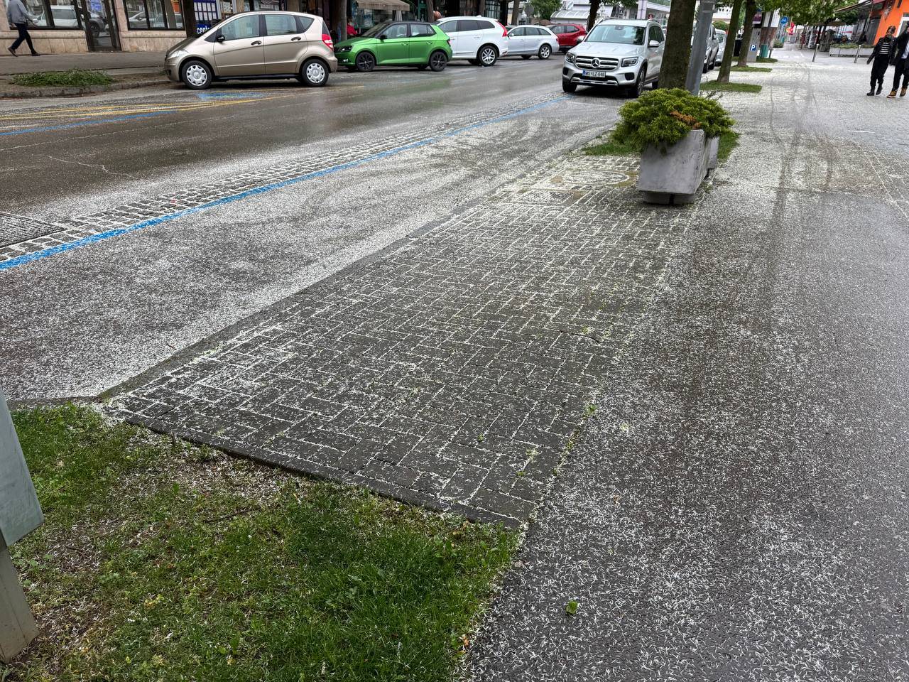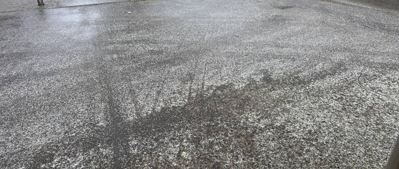 Najverjetneje gre za cvetni prah z dreves, ki ob stiku z mokro površino ustvari vtis snežne odeje.