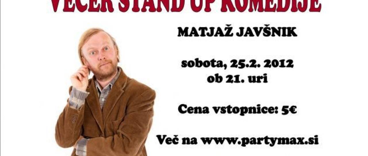 V soboto se v zabaviščnem centru Party Max obeta večer stand up komedije z Matjažem Javšnikom. Sodelujte v nagradni igri in si prisvojite eno izmed petih vstopnic.