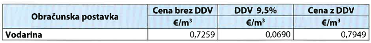Spreminja pa se cena vodarine, ki bo zdaj znašala 0,7259 evra na kubični meter brez davka na dodano vrednost, kar je 18,96-odstotno povišanje.