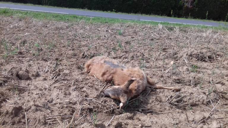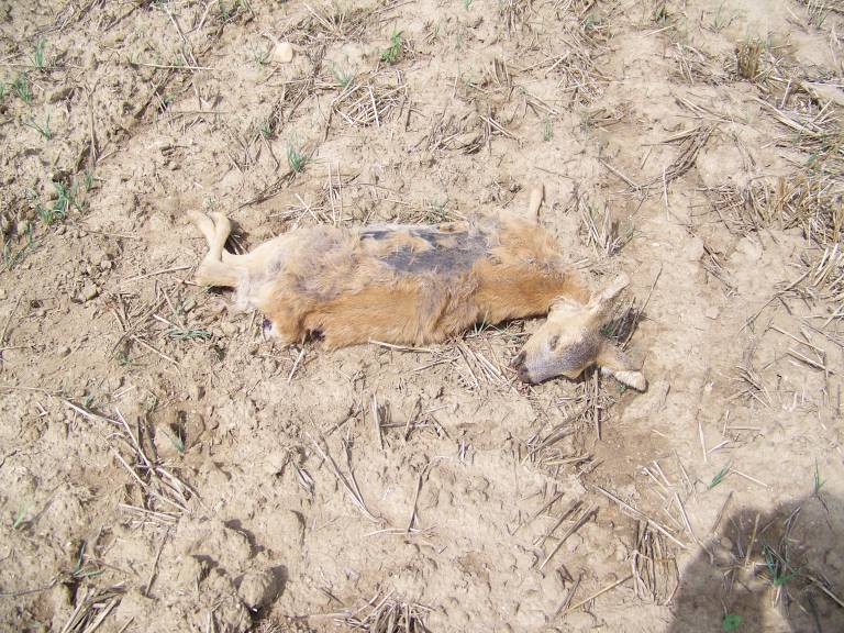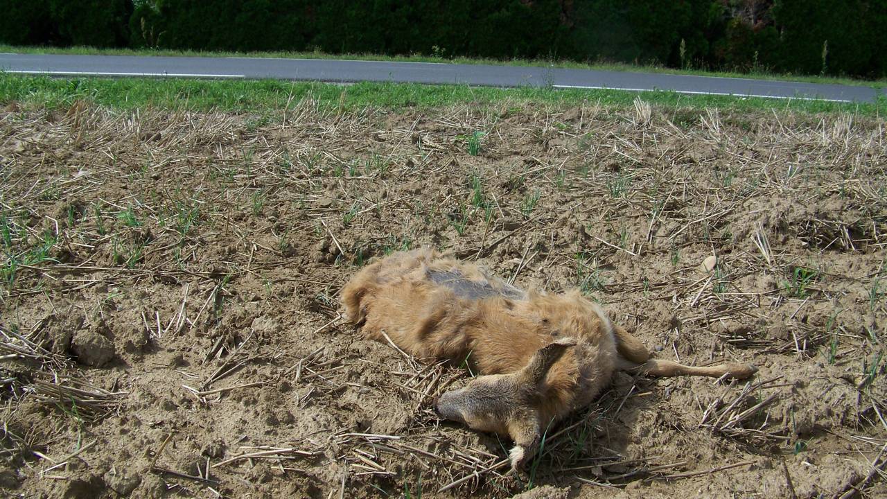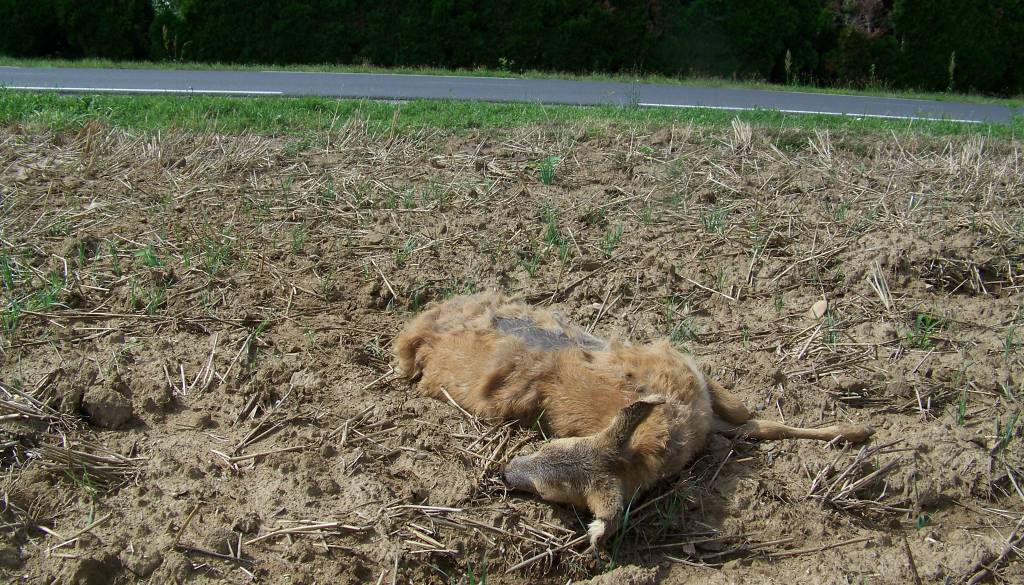 Poginula srna več dni ležala na strnišču
