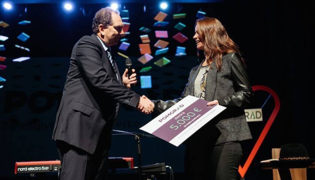 Pomgrad je včeraj ob letnem srečanju s svojimi poslovnimi partnerji v gledališču Park v Murski Soboti Kriznemu centru za mlade predal bon.