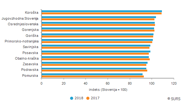 Razlike med regijami lani nekoliko večje kot v 2017
