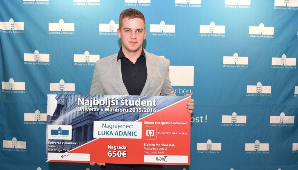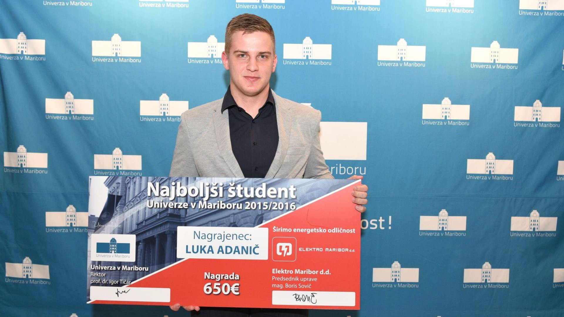 Univerza v Mariboru je v sodelovanju z družbo Elektro Maribor že četrto leto zapored izvedla razpis za izbor najboljšega študenta Univerze v Mariboru. Na razpis se je prijavilo 24 odličnih študentov. Njihove vloge je pregledala strokovna komisija, ki je na podlagi meril za ocenjevanje vlog izbrala najboljšega študenta Univerze v Mariboru. Najboljši študent Univerze v Mariboru je tako postal Pomurec Luka Adanič, študent 1. letnika magistrskega študijskega programa Strojništvo, na Fakulteti za strojništvo. Drugo mesto pripada Branku Nečemru, prav tako študentu 1. letnika magistrskega študijskega programa Strojništvo na Fakulteti za strojništvo, tretje mesto je dosegel Matic Ledinek, študent 2. letnika magistrskega študijskega programa Gradbene konstrukcije Fakultete za gradbeništvo, prometno inženirstvo in arhitekturo.