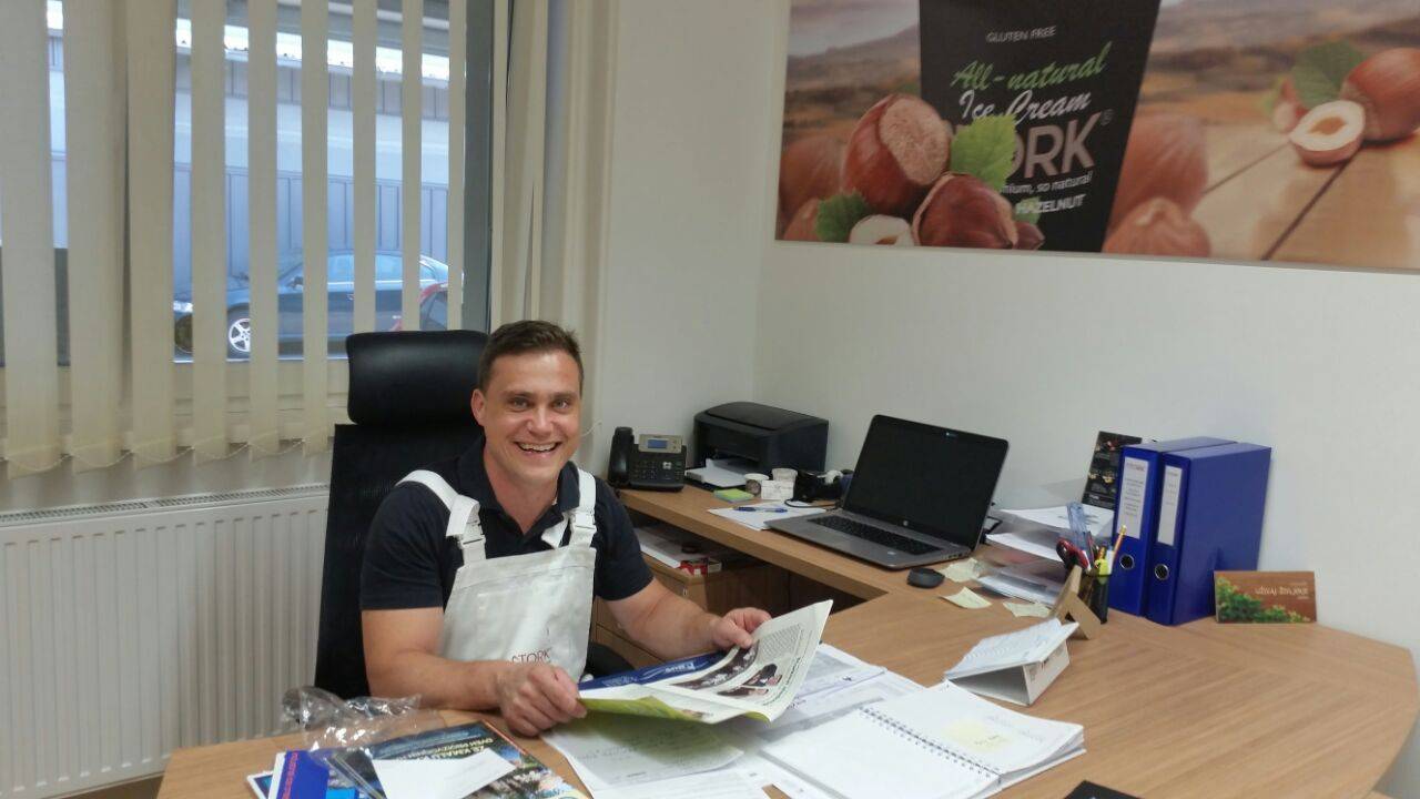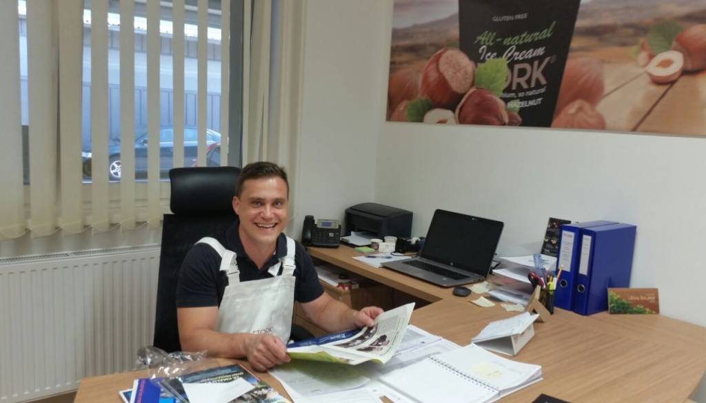 Ker v Gornji Radgoni ni bilo ustreznih prostorov za večjo proizvodnjo, je skupaj s poslovnim partnerjem, ki je že imel prostore na Teznu v Mariboru, tam začel s proizvodnjo sladoledov pod imenom Stork. Podjetje je ustvarilo in na trg lansiralo že enajst okusov – vsi sladoledi pa so, edini v Sloveniji, brez gensko spremenjenih organizmov, aditivov in barvil. Sadni sladoledi so veganski, dokaz dejanske vsebnosti pravega sadja pa je obarvan jezik po zaužitju. Sladoledi so tudi brez glutena in laktoze; za športne navdušence pa ponujajo tudi takšne brez sladkorja in s sirotkinimi mlečnimi proteini.